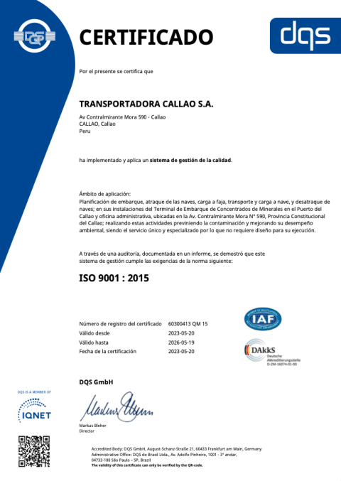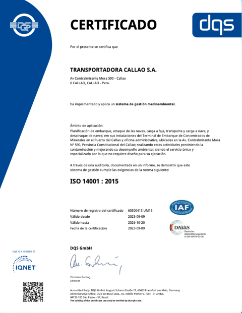 Transportadora Callao S.A. es el Terminal de Embarque y Faja Transportadora Tubular para Concentrados de Minerales en el Puerto del Callao.
